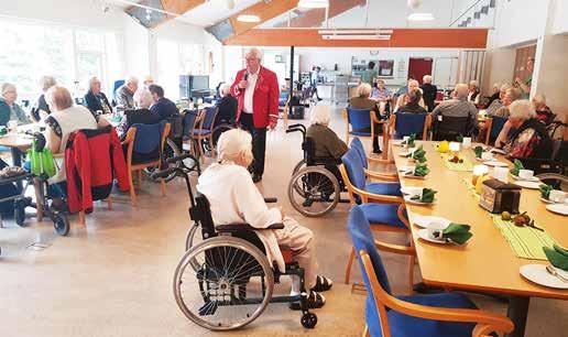 Posten leverede god un derholdning til stor fornø jelse for beboere og dagcen terbrugere. Henning Vad synger nogle af de sange som de ældre kender, og var rundt med roser ved bor dene.