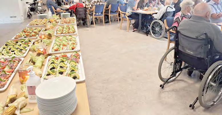 og grillmad. Alle 40 beboere, pårørende og gæster fra byen var inviteret og der mødte en stor flok op. 130 var tilmeldt arrangementet.