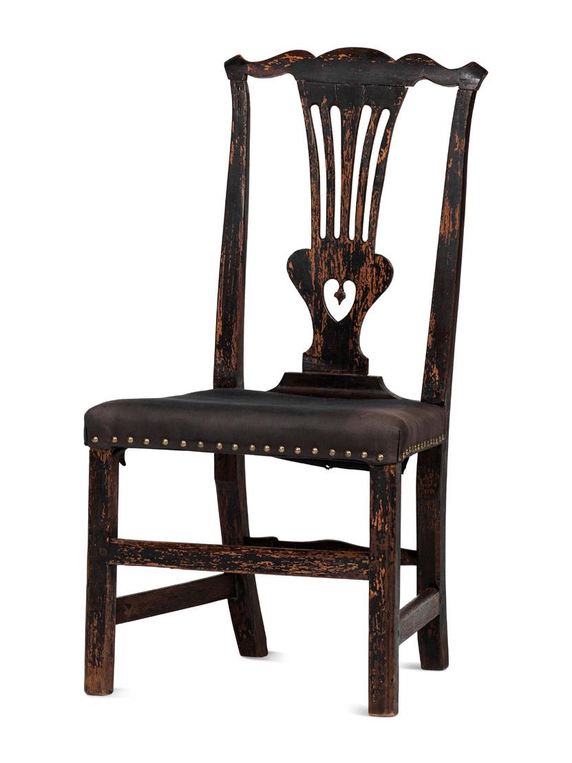 A Chippendale Carved and BlackPainted Walnut Side Chair