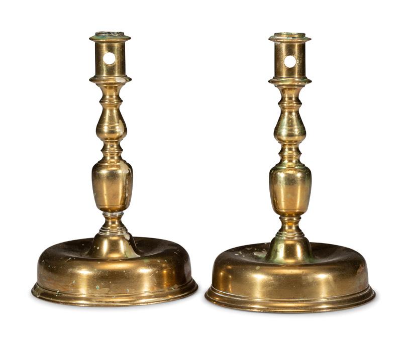 A Pair of Queen Anne Brass Petal Base Candlesticks