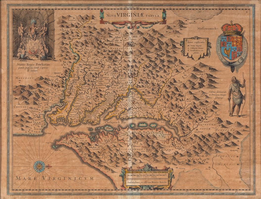 HONDIUS, Jodocus (1563-1612). Virginiae item et Floridae Americae provinciarum, nova descriptio. Amsterdam, ca 1634 or later.