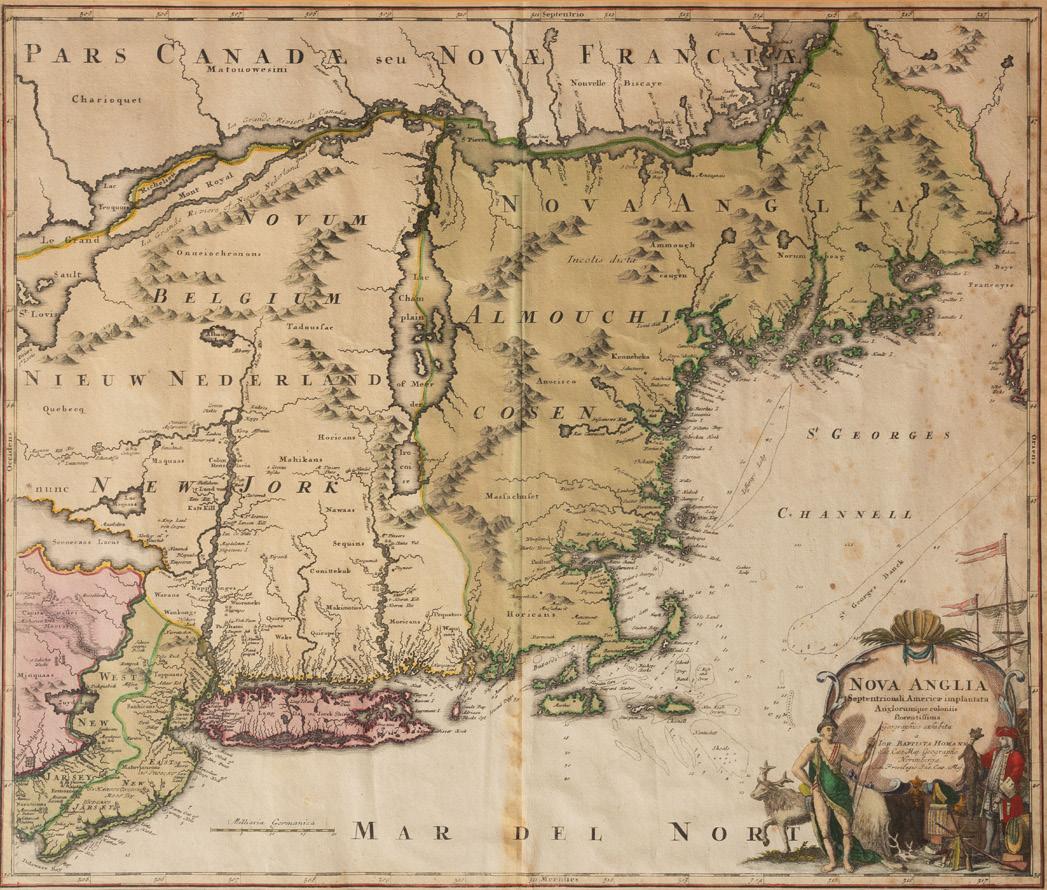 Early 18th Century, Likely Massachusettes retains bale and snipe hinges.