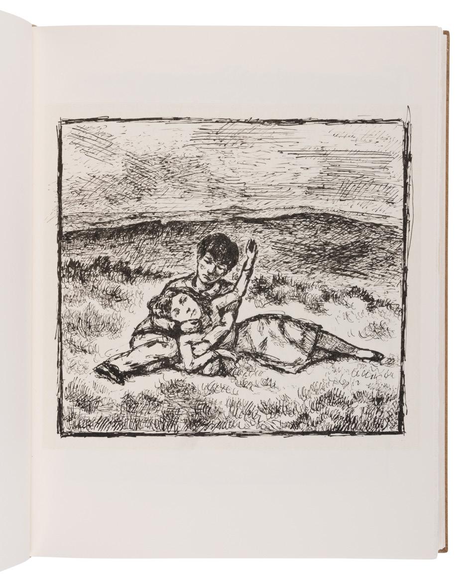 4to. 54 plates including 42 in heliotype and 12 in pochoir by Jean Saude. Loose as issued in original portfolio with ties, upper cover with printed label (rebacked).