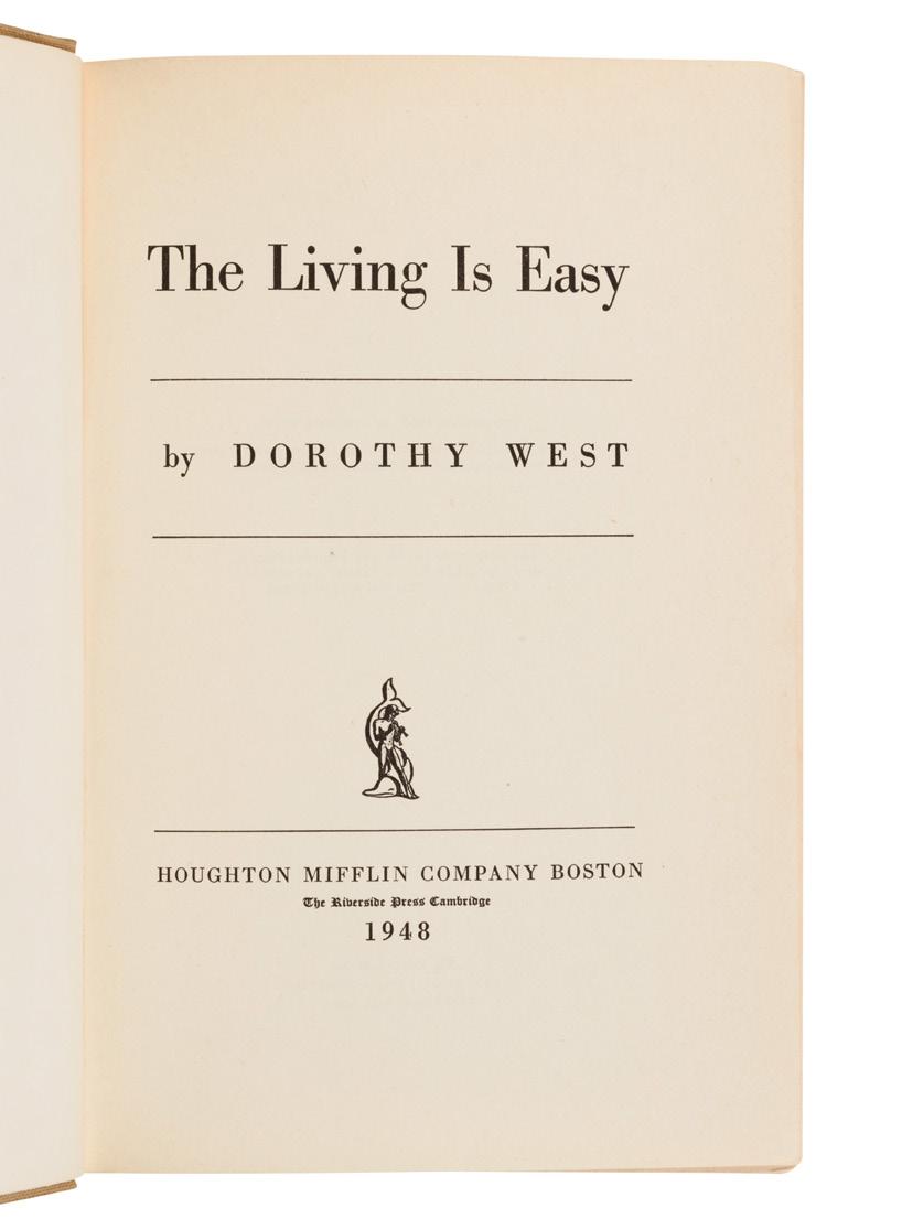 [AFRICAN AMERICAN LITERATURE]. WEST, Dorothy (1907-1998). The Living is Easy. Boston: Houghton Mifflin Company, 1948.