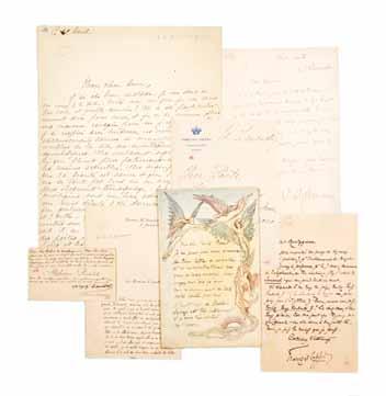 319* (MONTESQUIOU, ROBERT DE) A group of letters and correspondence to Robert de Montesquiou from famous contemporaries, including Camille Saint-Seans, Alphonse Daudet, Walford Graham Robertson (with original watercolor), Renee Lalique, and William Ritter. Property from the Estate of Antonina Meyer, Chicago, Illinois $200-400
