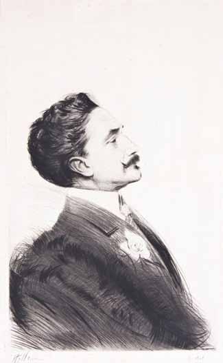 4to, contemporary maroon leather with gilt-stamped coat-of-arms of the Montesquiou-Fezensac family to upper board, gilt-lettered red leather spine label. With fold-out genealogical table tracing the lineage of the French Symbolist poet and dandy’s family tree, which includes Charles de Batz-Castelmore d’Artagnan, the model for Dumas’ musketeer. Very light wear to boards; a few repaired tears, dampstaining and light browning to leaves. Property from the Estate of Antonina Meyer, Chicago, Illinois $300-500 295* (MONTESQUIOU, ROBERT DE) HELLEU, PAUL Le Comte Robert de Montesquiou. Drypoint etching on heavy wove paper. Second state. Signed (“Helleu”), lower left. Property from the Estate of Antonina Meyer, Chicago, Illinois Literature: Montesquiou IV $800-1,200