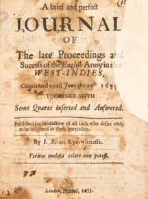 46 (SPANISH WEST-INDIES) A Brief and perfect journal of the late proceedings and success of the English army in the West-Indies, continued until June the 24th 1655 together with some queres inserted and answered. By I.S. an Eye-witnesse. London: s.n., 1655.