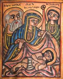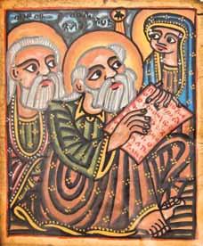 67 (MIDDLE EAST, MSS) COPTIC BIBLE A Coptic bible, 19th-century, hand-written in Ge’ez, with eight gouache illuminated miniatures in bold colors, hand-stitched in contemporary wooden boards with inset portraits of the Virgin and Child and Christ on the Cross, 177ff. Faint aroma to leaves; some intermittent soiling to pages. Accompanied by contemporary folding stand. $600-800 68 (MIDDLE EAST, MSS) COPTIC BIBLE A Coptic bible, 19th-century, hand-written in Ge’ez, on vellum, text in red and black, decorative chapter heading, 108ff. 12mo, contemporary blind-stamped calf, pages sewn. Two leaves with 1-inch circular holes; minor intermittent soiling. $300-500