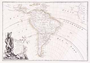 50 (MAP) JANVIER, S. L’Amerique Meridionale divisee en les principaux etats. Paris, 1782. Engraved map of South America, hand-colored in outline. Framed and matted. 22 x 28 inches. $100-200