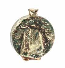 702* A Peters and Reed Pottery Vase, of tapering cylindrical form with a scalloped rim, decorated with cranes among cattails, unmarked. Height 13 3/4 inches. Property from the Estate of Ms. Jacqueline Kuznicki, Chicago, Illinois $150-250 703* Two American Pottery Articles, comprising a low bowl and a squat ovoid vase, each with a matte green glaze. Diameter of first 9 inches. Property from the Collection of Dr. Marilyn Stocker, Chicago, Illinois $80-120