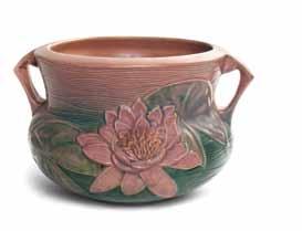 640* A Roseville Pottery Jardinière, in the Water Lily pattern, numbered 663-8, marked Roseville USA. Width over handles 13 1/2 inches. Property from the Estate of Ms. Jacqueline Kuznicki, Chicago, Illinois $200-400