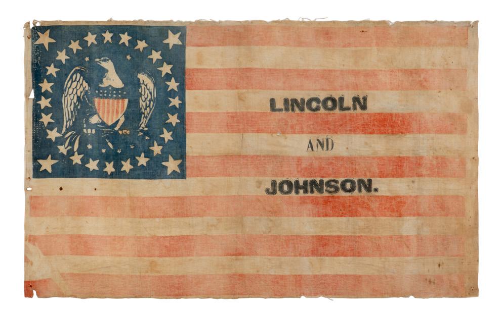[LINCOLN-JOHNSON CAMPAIGN]. An exceedingly rare 34-star eagle parade flag, ca 1863-1864. Sold for $281,600