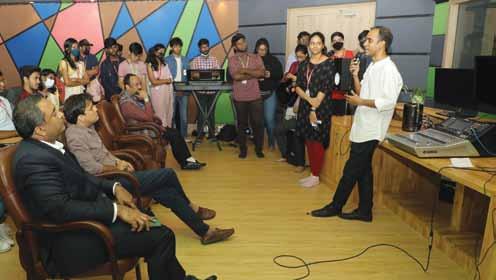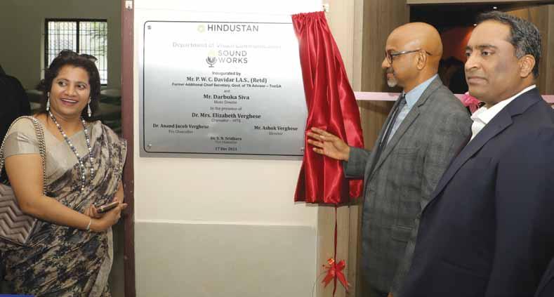 A grand launch of "Sound Works", a recording studio of Department Visual Communication, School of Liberal Arts and Applied Sciences (SLAAS), at the Bay range campus, HITS was unveiled by Mr. Darbuka Siva, Music Director; and Mr. P.W.C. Mr. Davidar, Retired IAS Officer on 17 December 2021. Mr. Sameer Bharath Ram, CEO, Sameer Ventures presided as the special guest. "Sound Works" is equipped with state-of-the-art facility consisting a live room equipped with microphones and mic stands; and a console room equipped with Yamaha TFI mixing console and audio recording software. "Sound Works" also houses various musical instruments such as keyboard, drums, miruthangam and guitars for practice.