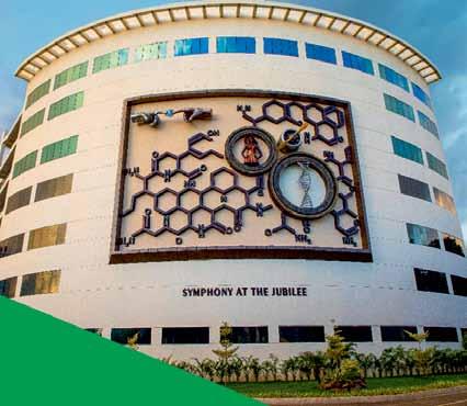 Symphony is a lengthy form of musical composition for orchestra. Alike Symphony, “Symphony at the Jubilee'' is a befitting name to a thoroughly conceived concept which has visually merchandised the steely resolve, and unfathomable vision of Hindustan Institute of Technology and Science. Every element of the mural symbolizes the integration of pioneering programmes and courses in a single location, the Bay Range Campus. All the mural items like hexagon, human & robot hand with spark, DNA representation, lady as a fashion icon, and letters were made in fibre material. The erection began with the help of a giant crane, and was fixed meticulously. “Symphony at the Jubilee'' is a mark of the graduands of varied disciplines who are inculcated with requisite skills and knowledge to meet the growing industry needs.