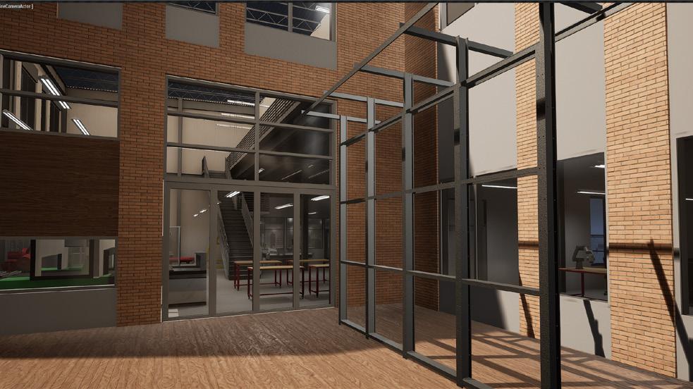 The space is equipped with a large touch-screen display students and faculty use for collaborative design sessions and interactive teaching. Cabinets hold a range of equipment students and faculty may check out, including drones for site surveys, Augmented Reality / Virtual Reality goggles, and environmental testing devices. In addition, the area serves as the makerspace for the design and fabrication of interactive devices using microcontrollers, actuators, and sensors.