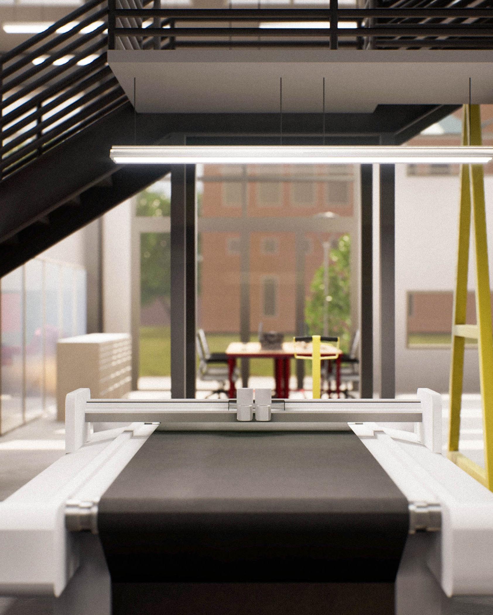 Finally, this area also houses several collaborative robots serving as the entry point for teaching robotics and automation to future designers. These robots are designed for safe human interaction and can be easily programmed to perform tasks.