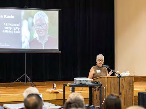 Longtime volunteer Lisa Rasin received a standing ovation at Lincoln Center on Oct. 4 when she was honored with the Montrew Dunham Award. The event, A Lifetime of Stepping Up and Giving Back, highlighted Rasin’s decades of leadership and service, from co-managing the FISH Pantry to chairing Rotary GroveFest.