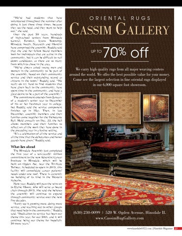 (630) 230-0099 | 520 W. Ogden Avenue, Hinsdale IL www.CassimRugGallery.com www.hinsdale60521.com |Hinsdale Magazine 23