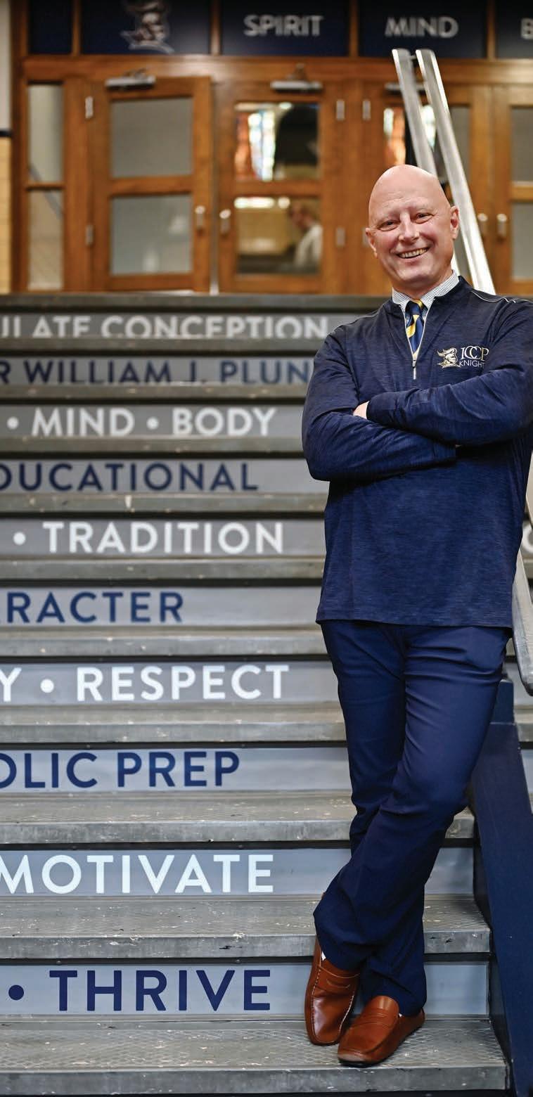 Vested. It’s the word to des cribe Bob Cronin, the new president of IC Catholic College Prep (ICCP). A familiar face around campus, Cronin and his wife, Beverly, (the preschool teacher at Immaculate Conception Grade School next door), sent four children through IC’s grade school and high school. After a successful career in business, Cronin, himself a graduate of the Elmhurst landmark, is right where he wanted to land.