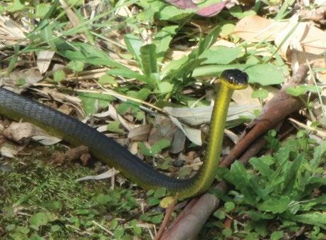 pinned its wings back. I believe the contest had been progressing for some time, because the Kookaburra’s efforts were weakening. As all fight finally went out of the bird, the snake unwrapped and adroitly slipped away into the vegetation in a single lithe movement, leaving a gasping, dishevelled opponent to recover.