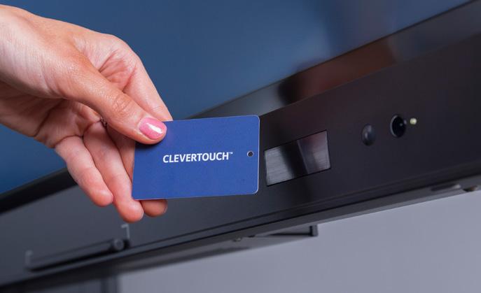 Con NFC integrado, los usuarios pueden simplemente pasar su llavero, tarjeta o dispositivo para cargar su perfil personal en cualquier Clevertouch en cualquier parte del mundo.