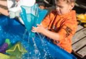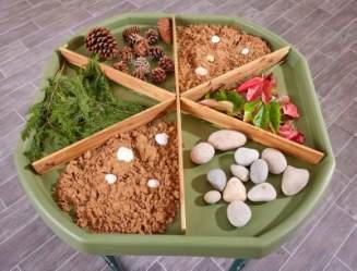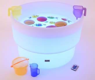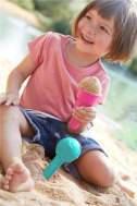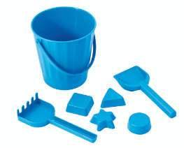 Joc 2: La galleda gran disposa d'una tapa perforada amb les siluetes de les 4 gures amb formes diferents que acompanyen el lot. Aquest joc també es pot utilitzar com a joc de sorra i aigua, ja que les 4 gures, a més de servir com a motlles de sorra, disposen d'ori cis pels quals es pot fer "pluja" d'aigua.