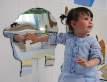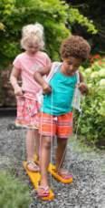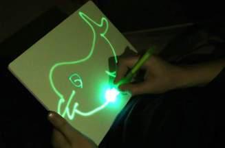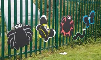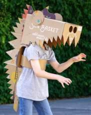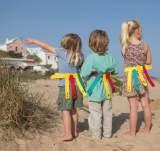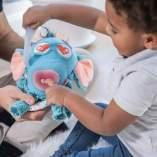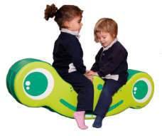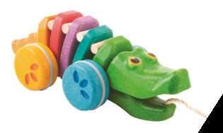 Quan els nens l'arrosseguen, el cocodril arc de Sant Martí mou el cap i la cua cap amunt i cap avall.
