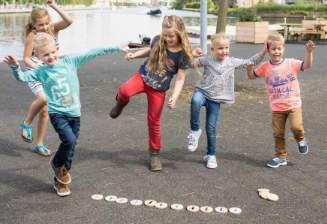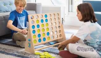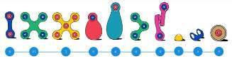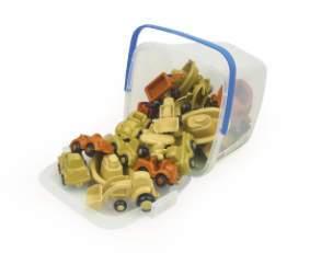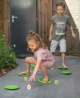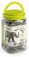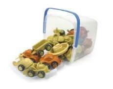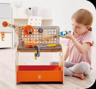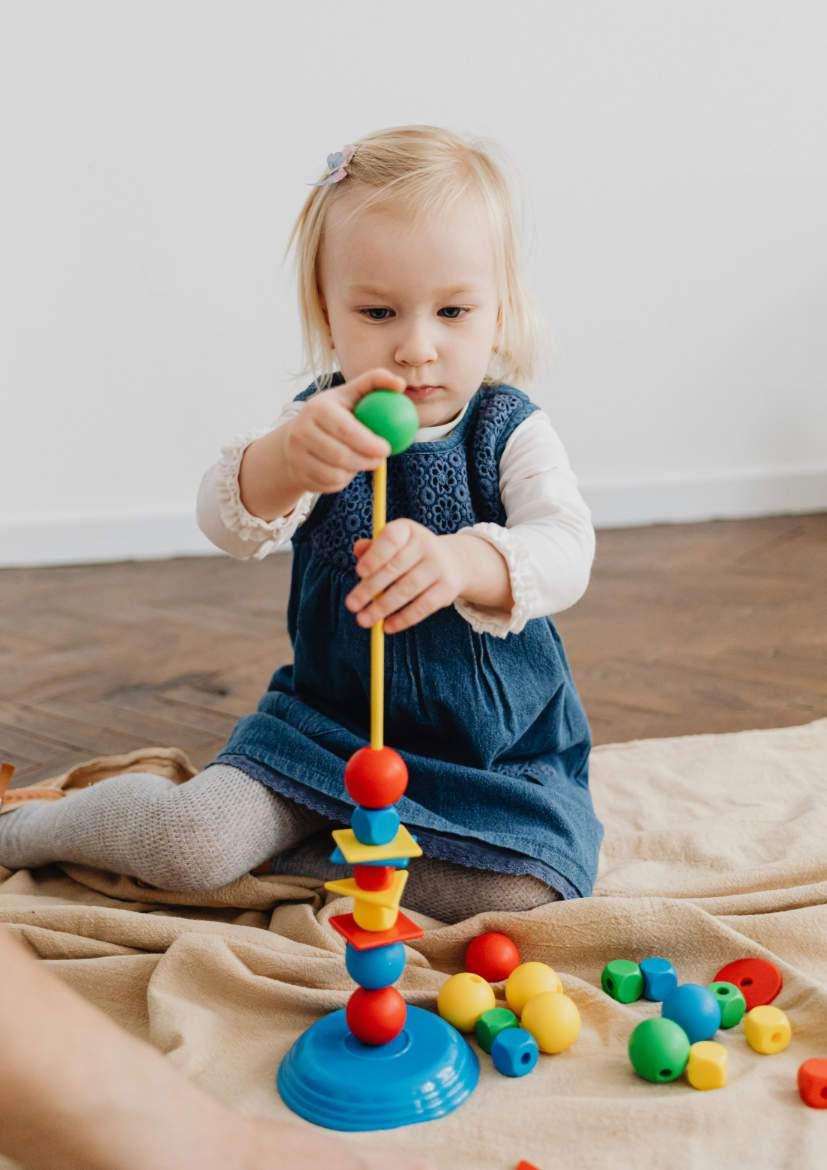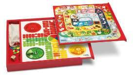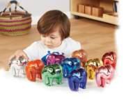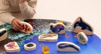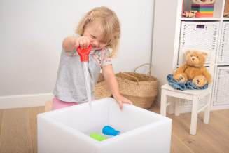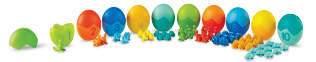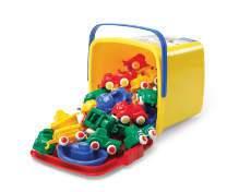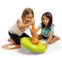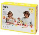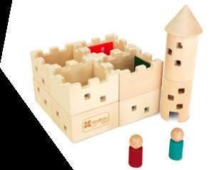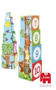 Joc1: Apilable gegant de 91 cm d'alçada format per 10 gotets de mida progressiva. Als petits els encantarà ordenar en vertical i apilar per posteriorment enderrocar-ho, que serà el que més els diverteixi. Es poden guardar totes les peces a la galleda gran amb nansa, que ocupa molt poc espai. Guardar també ajudarà a comprendre els conceptes ”gran-petit”.
