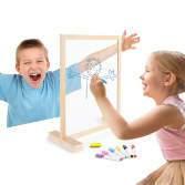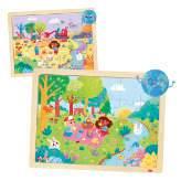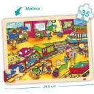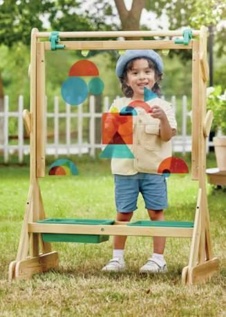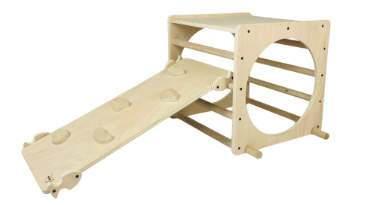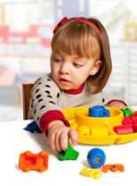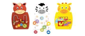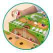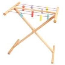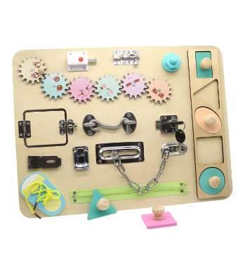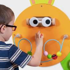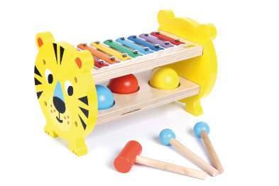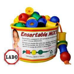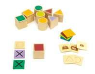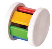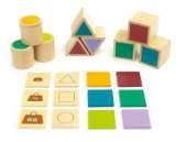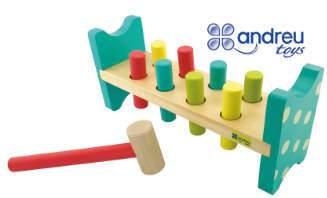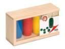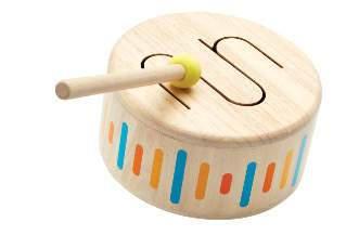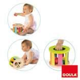 Divertit tambor de fusta de colors amb ranures amb formes per introduir peces amb formes geomètriques, que es poden treure per la part posterior. Desenvolupa la coordinació manual ull-mà, la percepció visual i la motricitat na. La seva forma estimula el gateig del nadó.