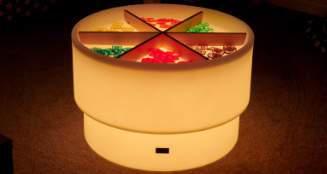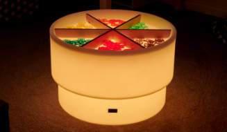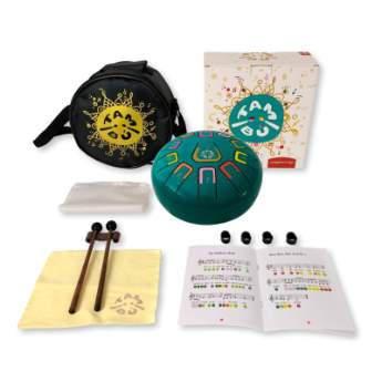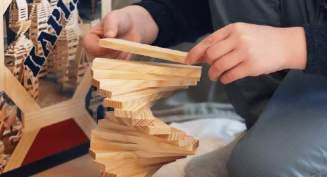 Mentre la roda gira, la bola de fusta que està dins colpeja els panells, creant un so agradable.