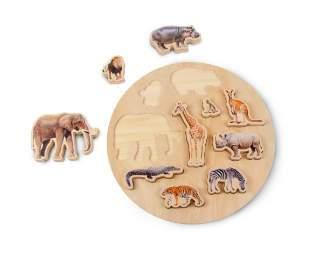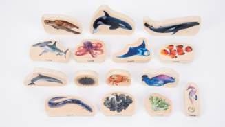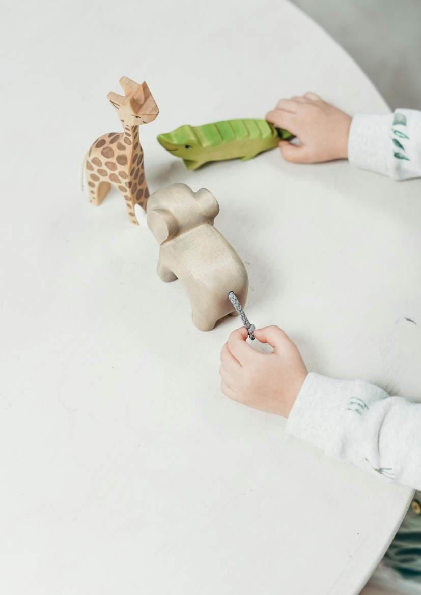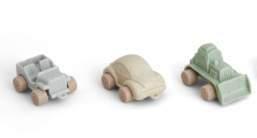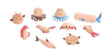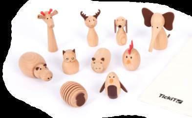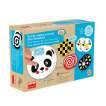 Lot de 3 sonalls d'animals amb sons únics, fabricats amb fusta natural i silicona. Fomenten les habilitats motores i el creixement sensorial. Ventoses per a jugar a qualsevol lloc.