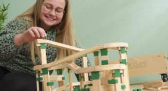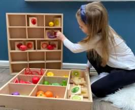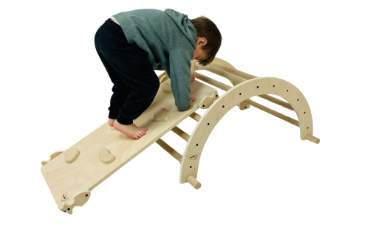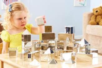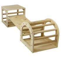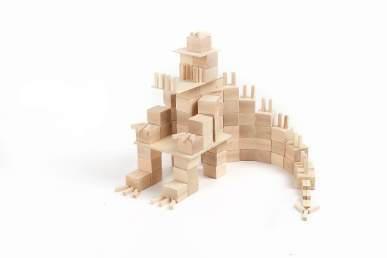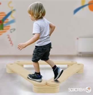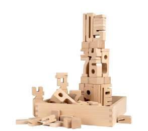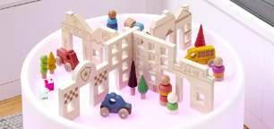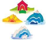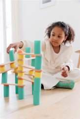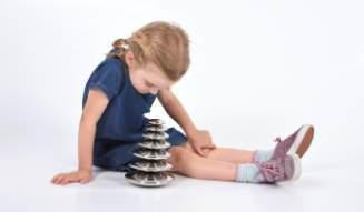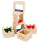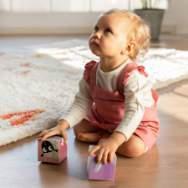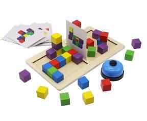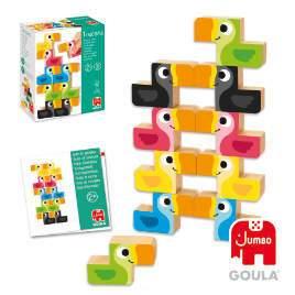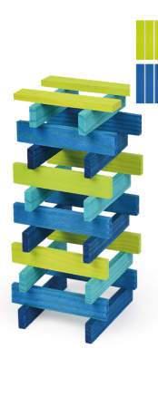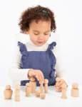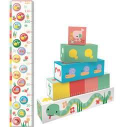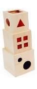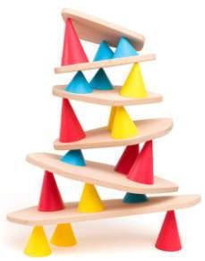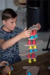 Joc d'equilibri que conté 10 cubs apilables de diferents mides. Ideals per al desenvolupament de la destresa manual i la coordinació ull-mà.