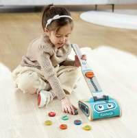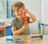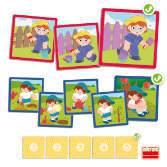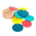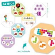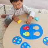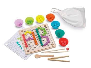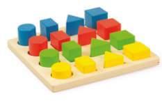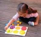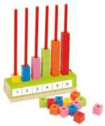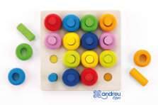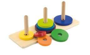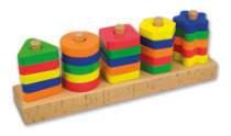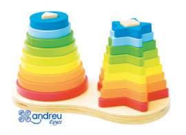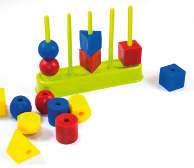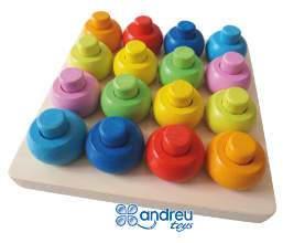 Joc d'apilament i classi cació, ideal per al desenvolupament de les habilitats motores nes, la destresa, la coordinació ull-mà i la manipulació. Ideal per induir a la lògica, la comprensió causa-efecte i la concordança. Gruix tauler: 1,2 cm. Gruix peça: 1 cm. Mides: 19 x 9,5 x 10 cm.