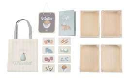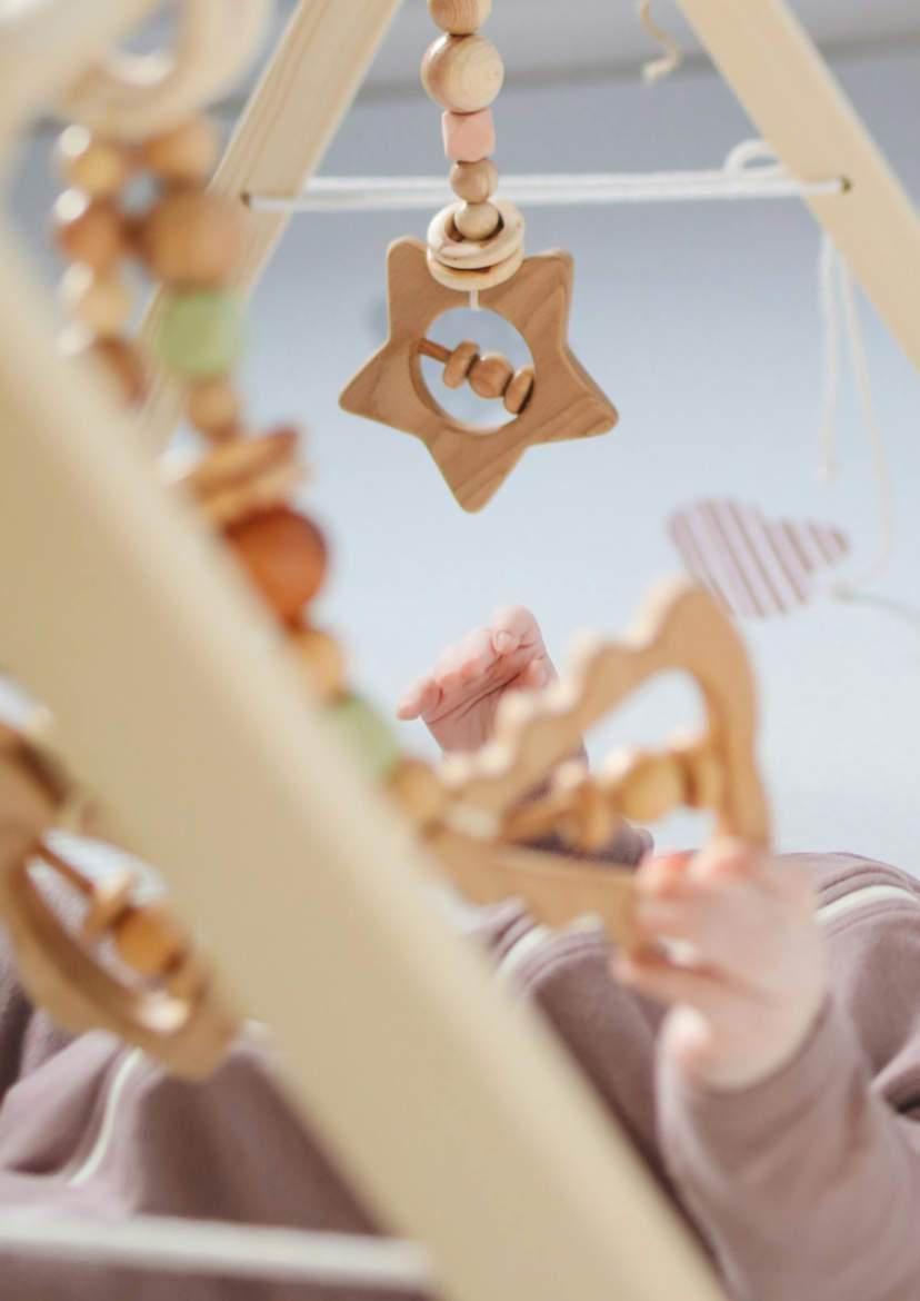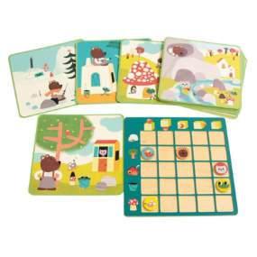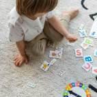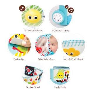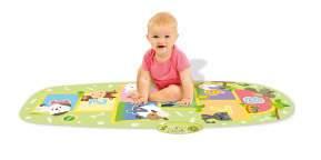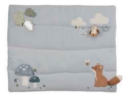 Manta de joc encoixinada que estimula de manera lúdica els sentits amb les seves diferents textures i activitats: trobar les fulles cruixents i els núvols suaus, conèixer la bonica guineu suau i jugar amb el mussol i el petit escarabat. També incorpora un petit mirall per a l’autoexploració i un anell transparent amb tres petites boles que fan so quan es mouen. Mida: 80 x 100 cm