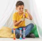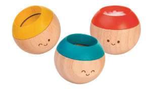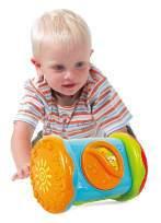 Aquesta joguina acolorida crea sons mentre roda. Estimula la vista i el so.
