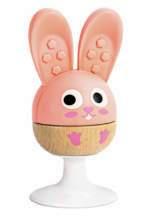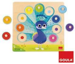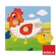 Primer apilable pel teu nadó. Munta a la base de fusta els diferents cèrcols de colors per acabar amb un cap de gallina. Els nens aprendran a diferenciar les mides i els colors mentre creen una bonica gallina.