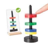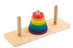 Joc inventat el 1883 pel matemàtic francès Édouard Lucas. L'objectiu del joc és traslladar tota la pila de discos a un altre dels pals o varetes seguint unes simples regles. Mides: 28 x 9,5 x 10 cm.