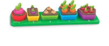 Aquest jardí ajuda a millorar les habilitats cognitives primerenques, com el reconeixement de formes i colors, la comparació de mides, el comptatge de l'1 al 5, etc., mentre classi quen, apilen i construeixen els seus testos de verdures amb pastanagues tendres, alls i molt més. A més, les peces reforcen la coordinació i altres habilitats motores nes. Inclou 21 peces. Fabricat amb plàstic resistent i fàcil de netejar, compleix la normativa de la EPA sobre el plom.