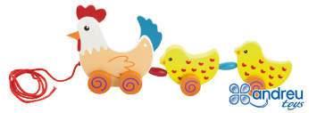 Simpàtic arrossegament de gallina i 2 pollets amb cordó de 70 cm. 2 cm de gruix Mides: 36 x 5,5 x 13,5 cm