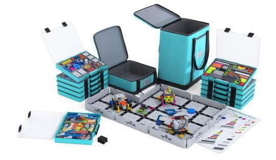 El lot tot en un per a qualsevol equip de competició VEX Robotics. Conté més de 1.500 components, un sistema de control V5, 6 motors intel·ligents V5, 8 sensors, 45 peces d'estructura d'acer, 610 peces de moviment, i tot el programari, eines i accessoris necessaris. Construeix mecanismes potents amb els engranatges, els pinyons i els eixos d'alta resistència inclosos. Suite de software de programació escalable disponible amb VEX Coding Studio