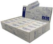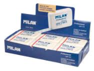 Caixa de 24 gomes de plàstic blanc, suau, versàtil i no abrasiva. Per esborrar sobre tot tipus de superfícies. No fa malbé el paper. Embolicada en cel·lofana rosa.