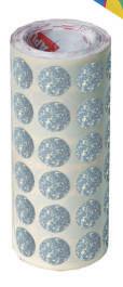 Rotlle de gomets Mosaic amb adhesiu removible. Cada rotlle conté 30 fulls pretroquelats per a una fàcil separació, un total de 2.460 gomets per rotlle.