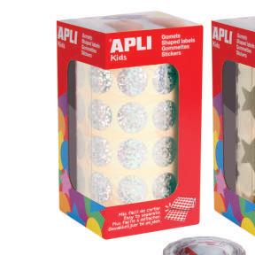 Rotlles de gomets mides grans per als més petits. Cada rotlle de 8,8 m conté les figures de rectangle, triangle, cercle i quadrat en 1 mateix color.