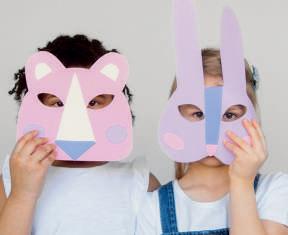 Set de 100 antifaços de cartró i amb goma de diversos colors assortits.