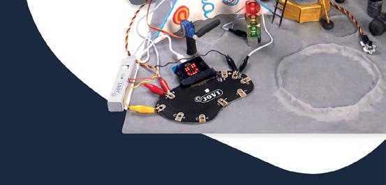 El kit inclou la placa BBC Micro:Bit, la placa Jovi, tempera conductiva, motors, sensors, llums LED, bateria powerbank i cables.