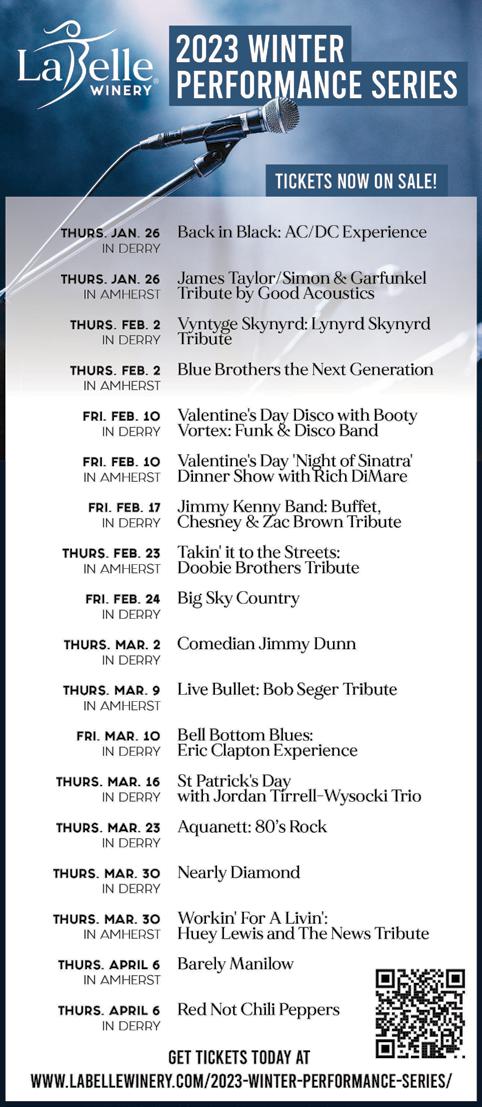 NEWS Of THE WEiRD BY ANDREWS MCMEEL SYNDICATION Tickets now available for the 2023 Winter Concert Series See all the Shows & Buy Tickets Open Christmas Eve 11:30am-5pm | Closed Christmas Day 20 hand crafted beers on tap Grab a Growler or 4 packs of cans Gift Comfort & Joy! Gift Cards, Apparel, Glassware, Beer Steins & more! Serving lunch and dinner daily. 40 Andover Road, New London, NH www.FlyingGoose.com | 603.526.6899 Holiday Cheer with Great Beer! Call for Takeout 603-935-7456 | 1100 Hooksett Rd Unit 111, Hooksett OPEN WED-SAT 11AM - 9PM | SUN 11AM-8PM CLOSED ON MONDAYS & TUESDAYS THROUGH THE END OF THE YEAR The Best of the Best, where lifelong friendships & memories are made. have you tried our “Santa Claus-mopolitan” yet? 138867 Daily Specials & Full Menu at secondbrook.com Take a break from your holiday to do list
