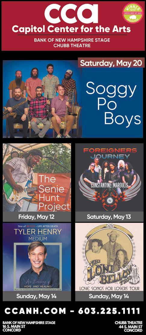 alSo on the cover The New Hampshire Gay Men’s Chorus celebrates their 25th anniversary with a concert series starting this weekend (page 16). The New Hampshire Farm, Forest & Garden Expo comes to the Deerfield Fairgrounds on Friday, May 5, and Saturday, May 6 (page 19). Get ready for Mother’s Day (Sunday, May 14) by checking out the list of meals and treats on page 24.