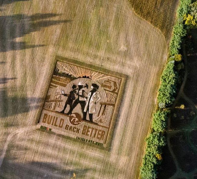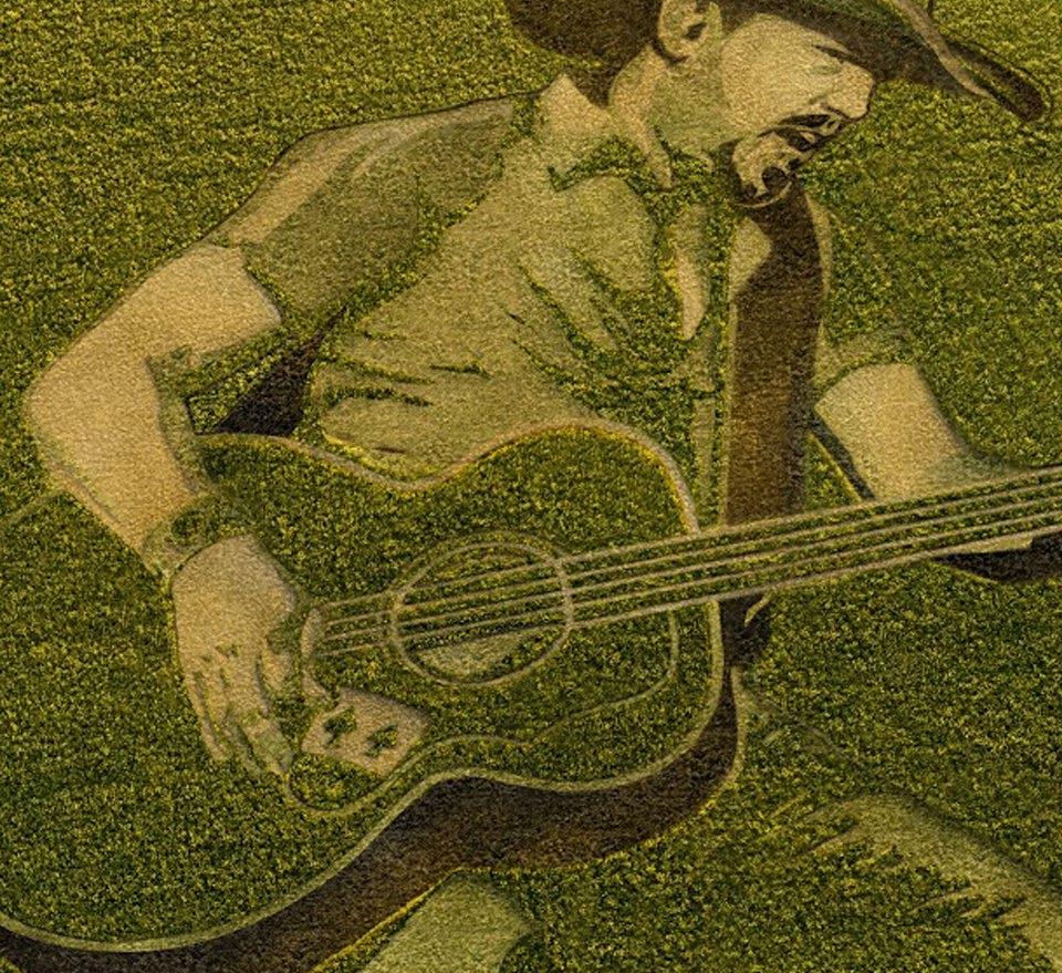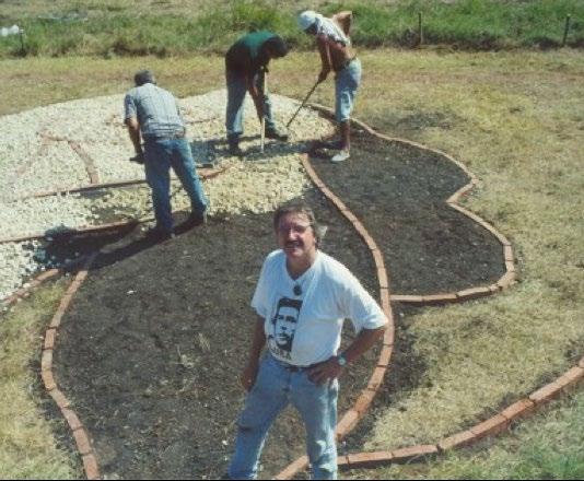 College students, brothers, artists, and three homeless men worked the summer away planting squash, cucumbers, tomatoes, soybeans, corn, and grass along side rocks, mulch, found materials and flowers to coax out the earthwork. The Image, in the undulating style of Tom Benton, depicted a country road leading out of the pristine Kansas landscape of my youth, juxtaposed against the steel and concrete canyons of Manhattan Island.“
