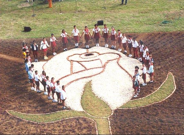 The school children from the outskirts of Havana helped pull weeds on the image of the White Rose.