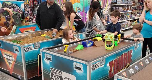 Traveling to Monster Jam Pit Parties and Retailers across the country, consumers get the chance to play with a variety of Monster Jam toys. Plus, they have the exclusive opportunity to sit in an authentic Grave Digger truck and see their other favorite trucks like Megalodon and El Toro Loco up-close and in-person!